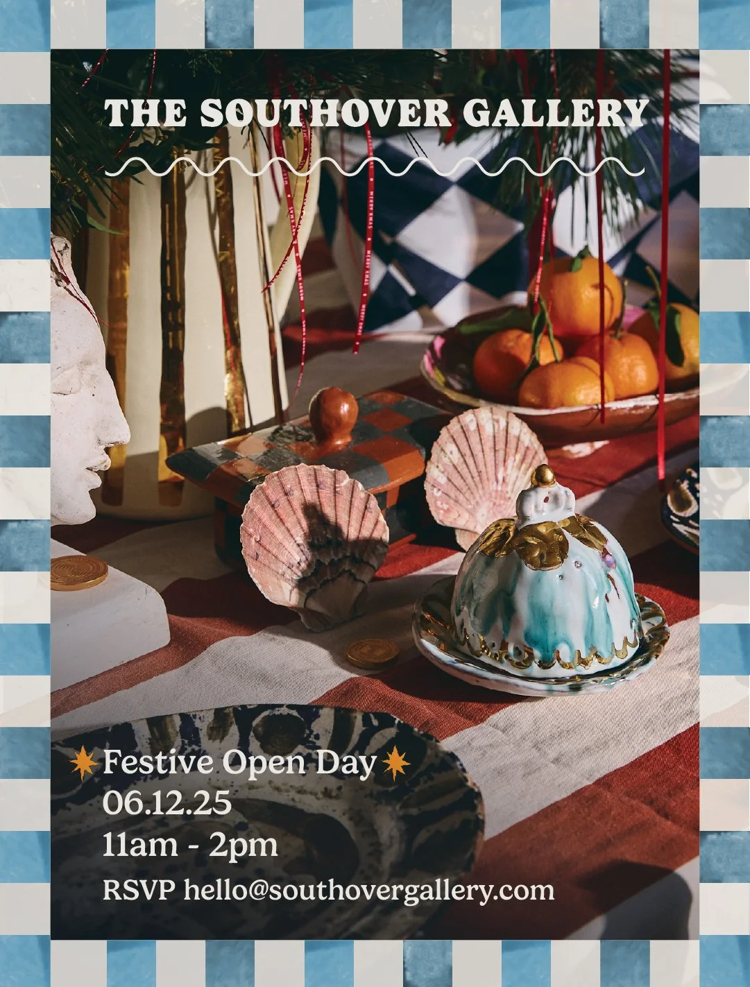 Enjoy sparkling wine from Artelium and festive delicacies from Loam Kitchen while you browse new works from our artists and shop from The Southover Galleryโs Christmas gifting table.